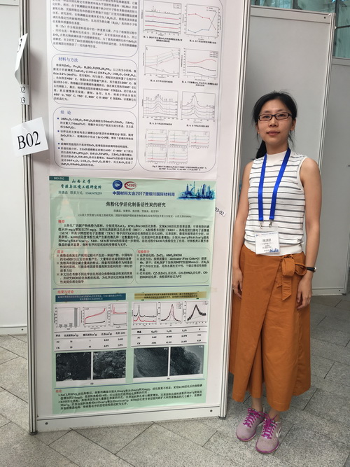 我所陈潇晶博士做了题为“焦粉化学活化制备活性炭的研究”的墙报进行参展,着重介绍了以焦化厂的副产物焦粉为原料制备吸附剂活性炭的活化机制,为焦粉制备活性炭提供了一定的理论依据,受到了同行的广泛关注。